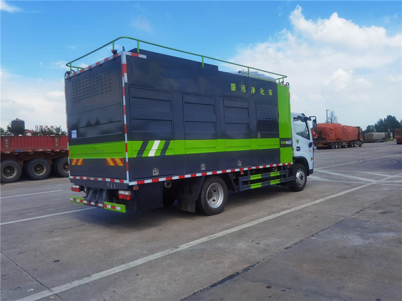污水凈化車主要采用東風多利卡、大運奧普力、江淮康鈴、江淮駿鈴、江鈴順達、重汽豪沃、東風天錦,東風專底等國六底盤改裝而成,裝有發電機組、高壓清洗泵和卷盤、污水分離箱、疊螺脫水機等設備。可將化糞池的污物抽入車中進行渣水分離,由脫水系統將糞渣凝結脫水,從而排出清水,并將糞便壓榨成餅狀當有機肥使用。這種車輛可以同時抽排并進行污水凈化,效率遠遠高于清洗吸污車。