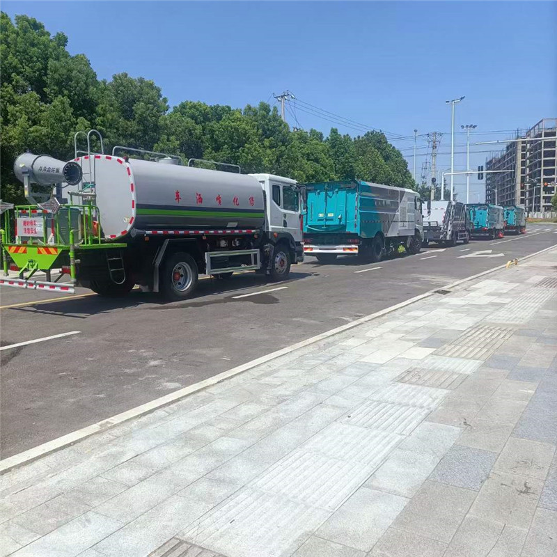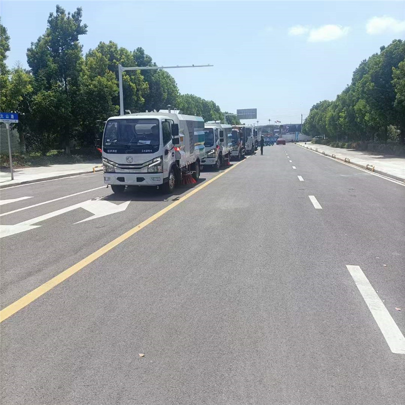 程力環衛車整裝待發,有序的發往北京。