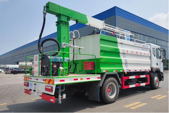 東風D9多利卡抑塵車,東風公司原裝底盤總質量:18000KG,整備質量:9660KG,額定載質量:8190KG,4500mm軸距,發動機采用康明斯210馬力,帶ABS,大燈自動調節。罐體容積約15立方,新穎的罐體設計使車輛行駛更穩定、使用壽命更長,大容量方型水箱,前沖、后灑、側噴、高炮,抑塵噴灑桿。噴灑桿離地3.4-5米、180°旋轉,后部平臺帶8KW柴油發電機組、電控箱。整車采用全智能駕駛室觸摸屏及遙控操作:車輛噴淋系統、攪拌、旋轉臂、加熱等等功能。灑水功能采用主機動力。旋轉、升降、攪拌采用發電機組動力,配電箱預留外接電源接頭套。