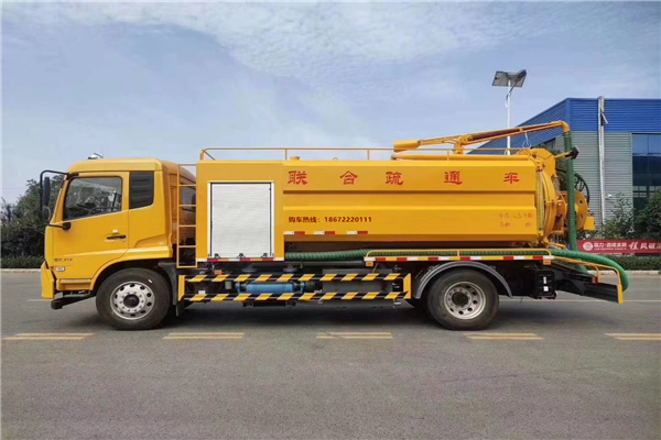 聯合疏通車具有自動到達人力所不能到達下水道堵塞區域,形成高壓沖洗、結合吸污減少液面對高壓沖洗的緩沖作用力,更好的達到疏通的目的,高壓清洗管道加裝專用銑頭,可以清理下水道樹根等障礙物,從而順利到達堵塞區域。