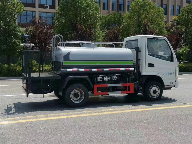 灑水車配置:前沖(噴)、后灑、帶側噴(花灑)、帶高位花灑,帶后工作平臺、平臺上安裝綠化灑水高炮(炮有大雨、中雨、毛毛 雨、霧狀可調節),配備專用大功率灑水泵,帶消防接頭,帶自流閥,帶自吸功能。