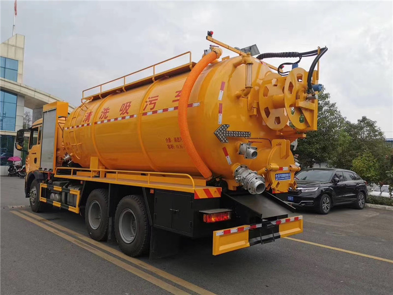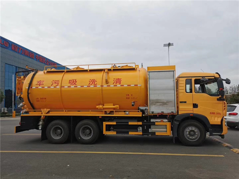 總結:這款重汽豪沃清洗吸污車由底盤發動機驅動高壓水泵來沖洗,吸污吸泥是由副發動機驅動循環泵抽真空產生吸力。