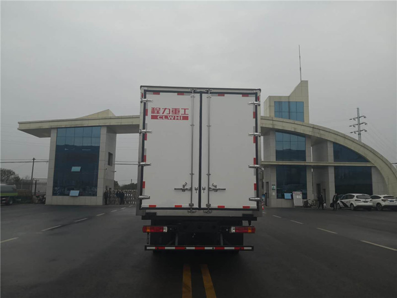 這款冷藏車采用國六新款東風多利卡單排駕駛室,原廠空調,方向助力,ABS制動系統,電動門窗,中控鎖,自動落鎖鑰匙,斷汽剎,多功能方向盤,定速巡航,導航及倒車影像。廂體采用真空吸附、液壓吸附一體成型生產線制造,三明治復合粘結,保溫性能達到國家A級標準。另外這款車內外壁板選用國內玻璃鋼(不吸光、隔熱性好、硬度強、抗氧化);中間夾層為高密度聚氨酯保溫板,厚度8cm,地板采用鋁花紋板,門邊條采用迷宮式橡膠密封條。