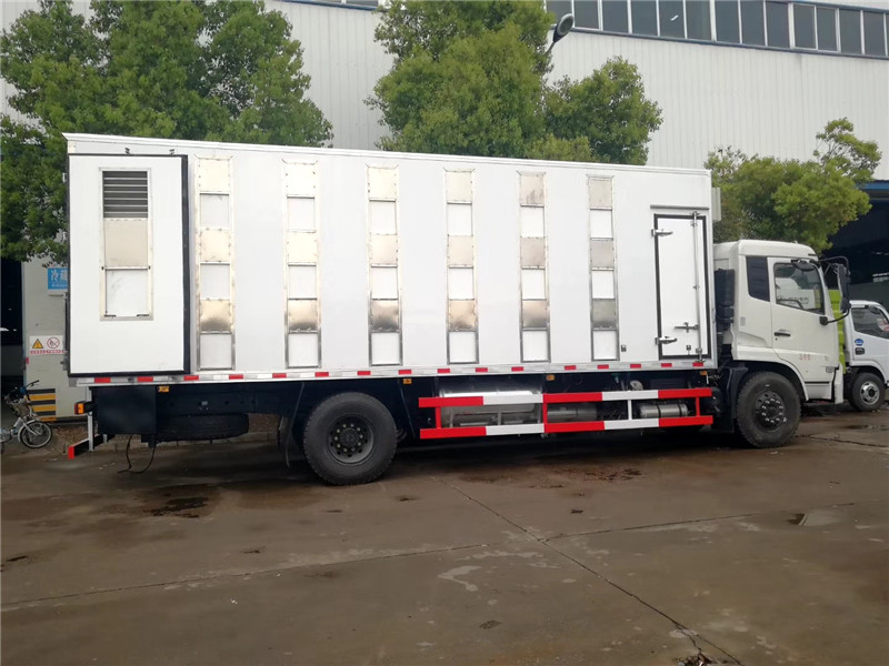東風(fēng)天龍恒溫運(yùn)豬車整車上裝采用沖孔板和保溫板雙層板結(jié)構(gòu)