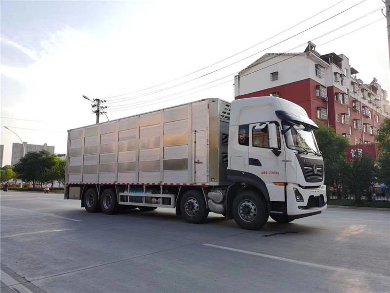 恒溫運(yùn)豬車專業(yè)術(shù)語(yǔ)叫做畜禽運(yùn)輸車,也被叫做拉豬車、運(yùn)豬車、雞苗運(yùn)輸車等等,主要用于活禽類運(yùn)輸,有廂式和倉(cāng)柵式兩種結(jié)構(gòu)形式,這里所說的恒溫運(yùn)豬車主要指的是廂式畜禽車,廂式畜禽車的配置更加高端,衛(wèi)生消毒系統(tǒng)更加的完善,舒適度也提高了很多,又是恒溫系統(tǒng),運(yùn)輸效率也很高,是現(xiàn)在市場(chǎng)比較流行的畜禽車型,接下來小編就為大家介紹一款單橋的畜禽車型——東風(fēng)天錦VR單橋國(guó)五畜禽運(yùn)輸車