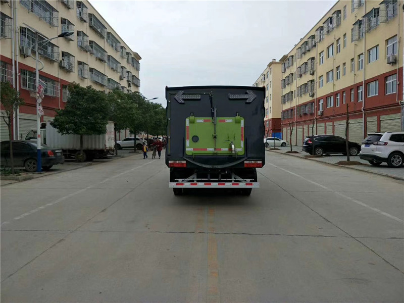 東風天錦洗掃車具備路面清掃、路面洗刷、高壓清洗、低壓沖洗、路緣石洗刷、垃圾收集、污水回收、噴霧降塵和道路隔離墻清洗、小廣告清洗等多種作業(yè)功能。 有“全洗掃”、“左洗掃”、“右洗掃”、“全掃”、“左掃”和“右掃”、“全洗”、“左洗”、“右洗”9種作業(yè)模式可供選擇。采用清水箱前置、污水箱后置的布置方式,半封閉式副發(fā)動機倉,左右開啟雙側(cè)門,方便人員輕松進入維修。具備垃圾箱舉升安全保護裝置,在后門未打開狀態(tài)下,確保垃圾箱無法舉升。