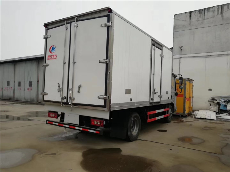 東風多利卡冷藏車采用聚酯濕法制板工藝和加強全木廂體框架結構
