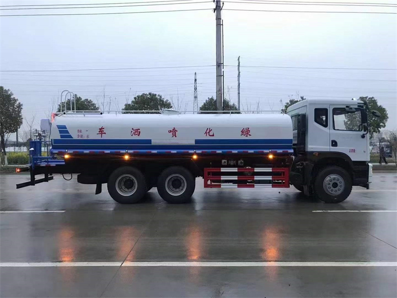 灑水車上裝:罐體采用標準Q235碳鋼制作,罐體自動焊,裝水25噸,配大功率專用灑水車,可自吸自排,前沖后灑,側噴,高位花灑,主管道加粗,大通徑球閥,直通球閥式消防接口,帶后工作平臺,沖孔平臺,帶高炮。(可選裝大平臺,可裝30米霧炮降塵)。環保,免征齊全。