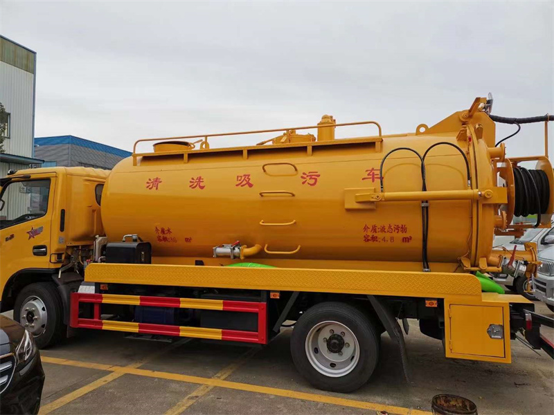 東風多利卡D7清洗吸污車圓形一體罐總容積約10立方,清水倉3方,其余為污水倉,采用6mm厚碳鋼板制作。清水倉頂部水車罐口,兩側防滑平臺、護欄;清水倉兩邊接DN65消防球閥,右側水污互通帶過濾網,左側裝一個補水球閥;清水罐底部排水閥2、高壓清洗:品孚215流量高壓泵,不銹鋼過濾桶,高壓泵低處安裝排水球閥,帶氣吹閥。高壓三通閥及多路閥裝在后卷盤上,壓力表朝上。