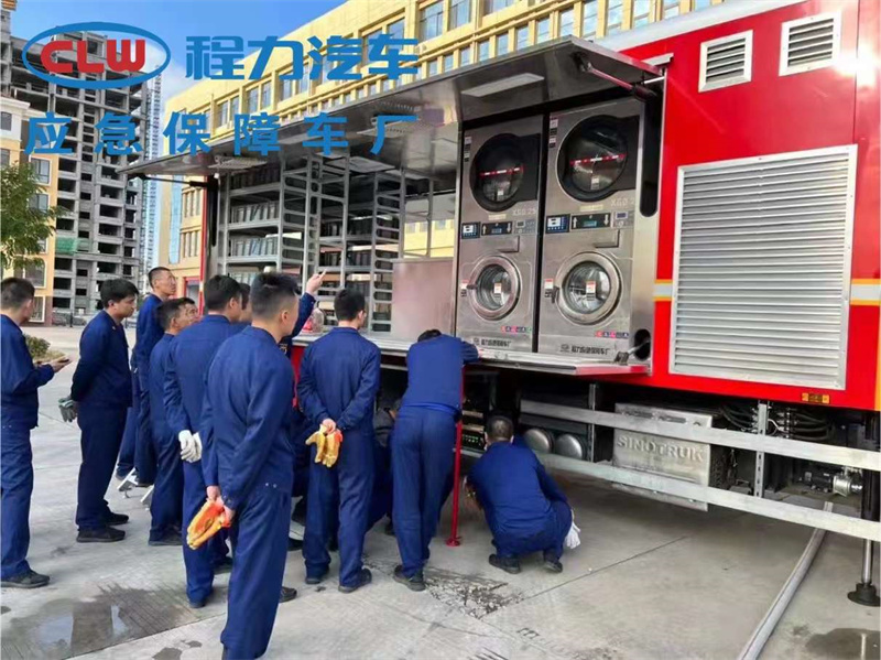程力專汽大型被服洗滌消防車,結合洗滌設備特點和應急救援實戰中衣物洗滌需求創新設計而成,整車性能優越,操作方便,自我保障能力強,集洗脫、烘干等多功能于一體,單次工作(約一小時)最大可洗脫、烘干100kg衣物,能將臟衣物快速處理成潔凈、干爽的衣物,是應急救援現場重要的后勤保障車型。