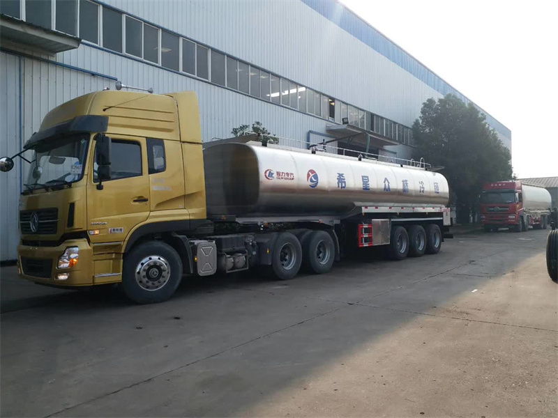 2、奶罐車的保溫性能超強。中間采用聚氨酯發泡保溫,保溫層厚度100mm,外蒙201不仿銹鋼,保證在-35℃至+40℃以上的環境下罐內運輸介質24小時內溫度變化≤1℃。