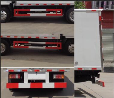 發動機凈功率為87kW,發動機型號4KH1CN6LB,油耗值為11.3L/100km;車廂頂部封閉不可開啟。防護材料:Q235A碳鋼,連接方式:左右側面均與箱體底面采用焊接連接, 后部防護與車架采用焊接連接,后防護斷面尺寸(mm):60×140,后部防護離地高度(mm):360。無側門時整車寬度為1910(mm),選裝側門時整車寬度為1960(mm),隨底盤選裝駕駛室;ABS及其控制器型號/生產企業對應關系為:APG3550500A/浙江亞太機電股份有限公司,CM4YL/廣州瑞立科密汽車電子股份有限公司;裝氣壓制動系統時,ABS及其控制器型號/生產企業對應關系為:CM4XL-4S/4M/廣州瑞立科密汽車電子股份有限公司。