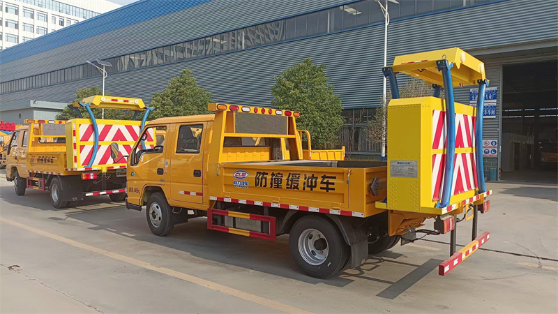 程力汽車集團廣東防撞車廠家電話18672220111李經理,該款為江鈴雙排座70K藍牌防撞緩沖車,CL5043TFZ6AJB型,軸距3360,700鋼絲胎,貨箱采用邊三底四,國標優質鋼板材,車架頂部裝有LED顯示屏,LED誘導燈/箭頭燈,配70K防撞緩沖墊。程力汽車防撞緩沖車——質量好,價格實惠,新車充足,購車首選程力防撞緩沖車。