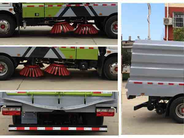 此車為道路洗掃專用車輛,專用裝置為掃刷.防護材料:Q235A碳鋼,連接方式:左右側(cè)面防護為掃刷,離地高為(mm):200,后下部防護與車架采用焊接連接,后下部防護尺寸:50×120(mm),離地面高度350mm.隨底盤選裝駕駛室.ABS型號:ABS/ASR-24V-4S/4M,ABS型號廠家:襄陽東風(fēng)隆誠機械有限責任公司.整車長/軸距對應(yīng)關(guān)系為(mm):6500/3600,6700/3800,6850/3950,6950/4050,7000/4100,7300/4400.
