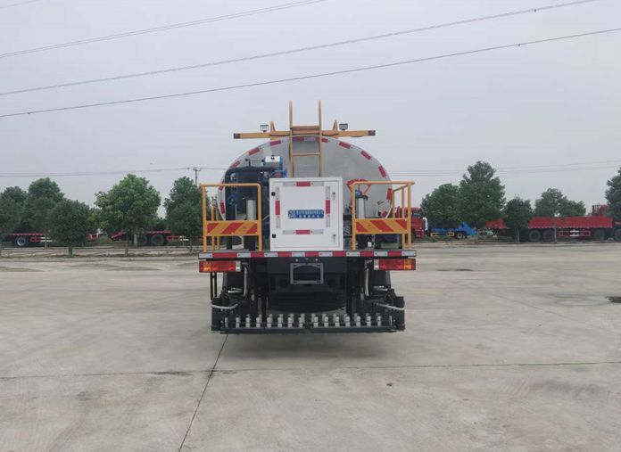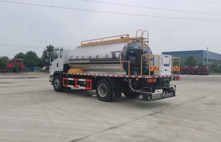 上裝部分:高粘度瀝青泵QGB680。進口液壓比例閥。日升牌散熱器。安徽長源齒輪油泵。浙江寧波液壓馬達(AKS05-110)驅動瀝青泵。駕駛室內觸屏及尾部平臺手動控制,對尾部 34個瀝青噴嘴一對一控制。升溫方式,柴油燃燒器(意大利利雅路G20)加熱導熱油循環升溫。配備7千瓦汽油發電機。灑布量:0.3-3L/㎡,灑布寬度4.5米。主要噴灑乳化瀝青、熱瀝青、SBS改性瀝青等。