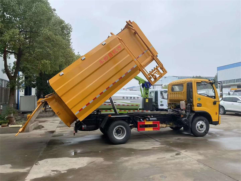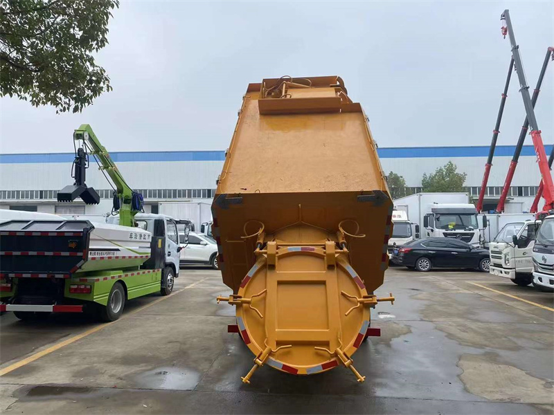 車箱容積:10立方米,帶掛桶提升機構,可掛240L方桶和圓桶,車箱采用雙油缸舉升自卸,后門液壓開啟關閉帶4個手動鎖件裝置。