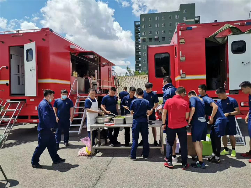后勤保障車專業(yè)廠可移動飲食保障車交付后部隊官兵使用中。完全滿足200人以上就餐。部隊官兵承擔各類應急救援任務外,還擔負著周邊縣區(qū)急、難、險、重等應急救援任務。特別是地震、山體滑坡和泥石流等重大救援工作,由于參戰(zhàn)人員多、時間長、強度高、消耗大,對部隊戰(zhàn)勤保障能力建設提出了較高要求,保障工作是否得力直接影響到了整個應急救援工作的成敗。