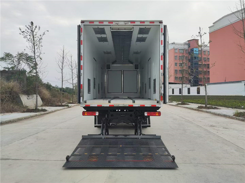 (3)廂體配件:廂體周邊鋁合金包邊,不銹鋼包角,不銹鋼門鎖,不銹鋼門框及合頁,廂體內(nèi)節(jié)能LED照明燈,廂體左右共5扇單開門,廂體靠前帶隔倉。