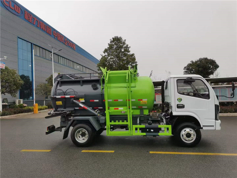 程力為專業(yè)生產(chǎn)餐廚垃圾車廠家,這款藍(lán)牌東風(fēng)圓罐餐廚垃圾車容積約5方,3308軸距,帶舉升功能,提升機,后蓋液壓開啟和液壓鎖緊。藍(lán)牌餐廚垃圾車可以隨意進(jìn)入市區(qū),無限制。東風(fēng)餐廚垃圾車后蓋采用液壓開啟、液壓鎖緊。后蓋帶有密封條防止垃圾運輸過程中泄露造成二次污染。