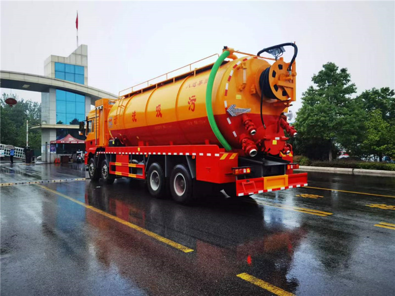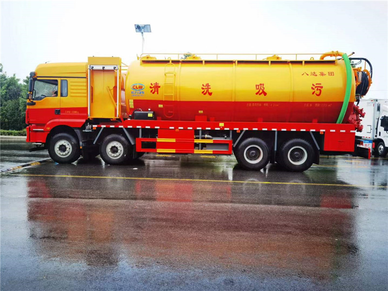 陜汽德龍國六前四后八程力牌CL5312GQW6CC 新M3000清洗吸污車人性化設計,最實用的4橋清洗吸污車,底盤配置:濰柴發動機460馬力,輪胎:12.00R20,底盤后橋加固(四騎馬螺栓),M3000加長高頂駕駛室,液壓懸置、空氣主座椅、駕駛室手動翻轉、金屬保險杠、電動空調、電動搖窗機、國產轉向機、國產離合器、備胎架、國產四通道ABS、搖臂式遠程油門控制裝置、天行健智雅版BD車載終端、變速箱后取力。